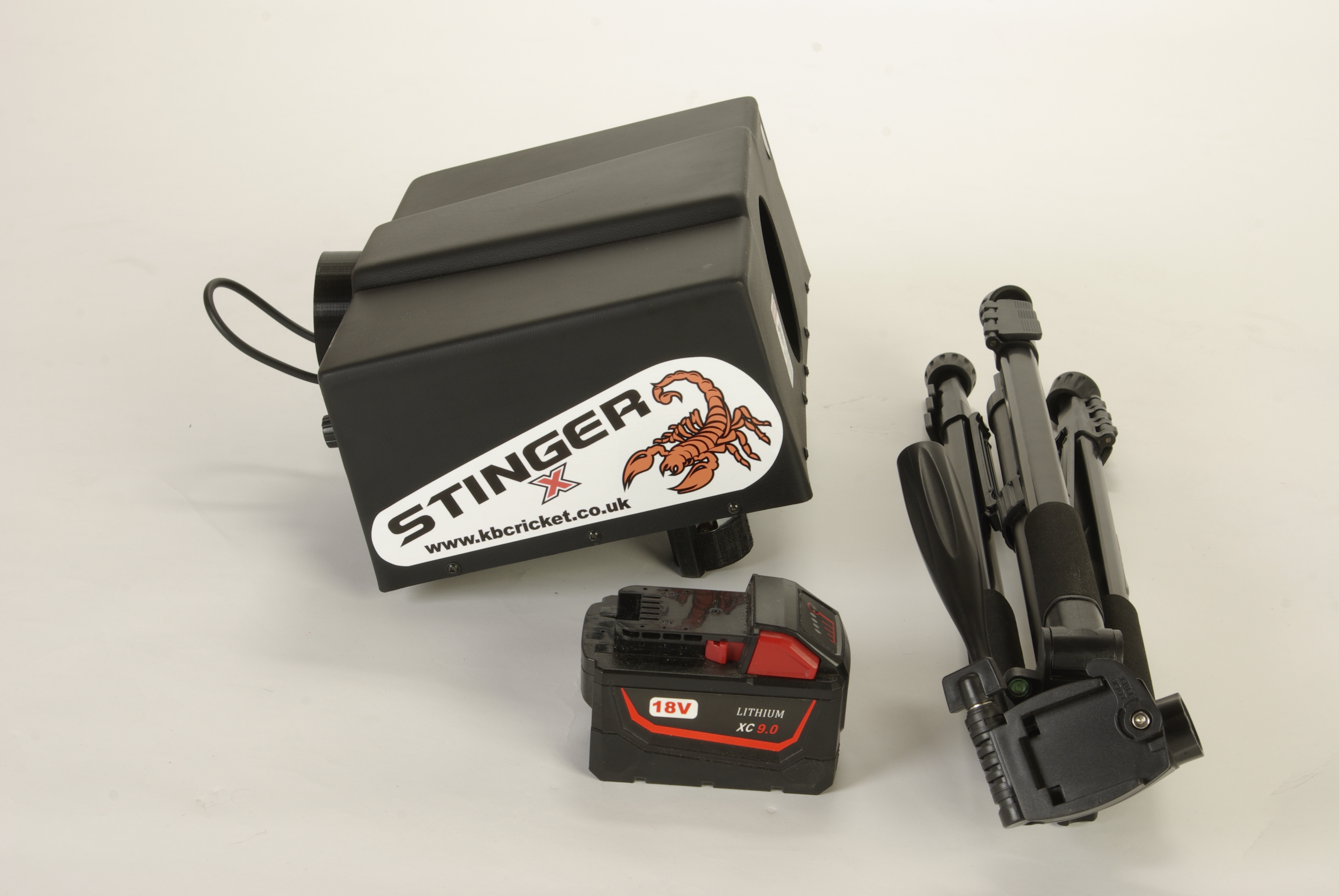 The brand-new adapted tripod makes it possible for the machine to vary the line and length of delivery with minimal effort. The stinger can extend to a height of 6 foot or be lowered to around knee height for fielding drills, it has a fully adjustable speed settings from 1 to 70+mph (Speed is Dependent on which ball you are using, swing on the ball is made possible via individual control of the drive wheels via speed dials
